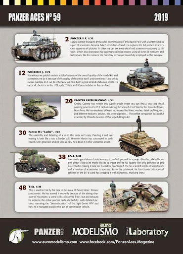 Étape par étape, les procédures par les amateurs les plus prestigieux de la scène internationale. Le magazine comprend également des visuels assez unique de véhicules améliorés avec de nombreux profils par des illustrateurs en circulation dans le hobby militaire de grande envergure. Astuces, techniques, conseils de paysage, peinture de chiffre d'échelle (des équipages) et avis photographiques sur les vrais véhicules que ceux-ci apparaissent dans le magazine.