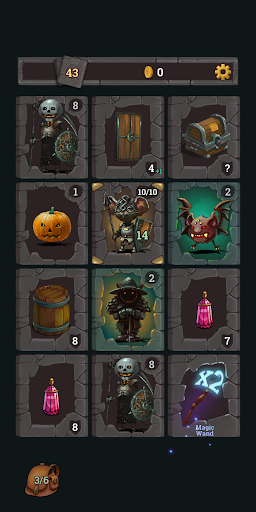 Battez les boss afin d’augmenter la difficulté et le multiplicateur de butin. La prochaine carte qui apparaîtra sera un coffre. Une récompense dans un donjon ? Vous plaisantez ! Certaines sont des cartes très puissantes tandis que d’autres sont dangereuses telles que le poison.